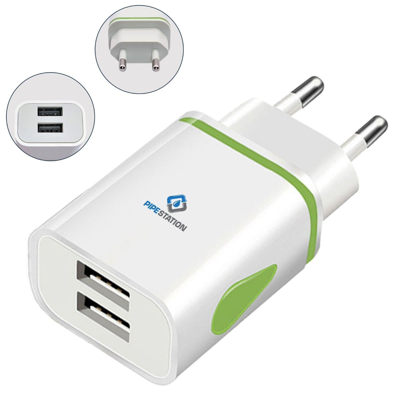 EU 2 Pin to Dual USB Plug Adapter, Travel Charger, Europe Adaptor iPhone Samsung