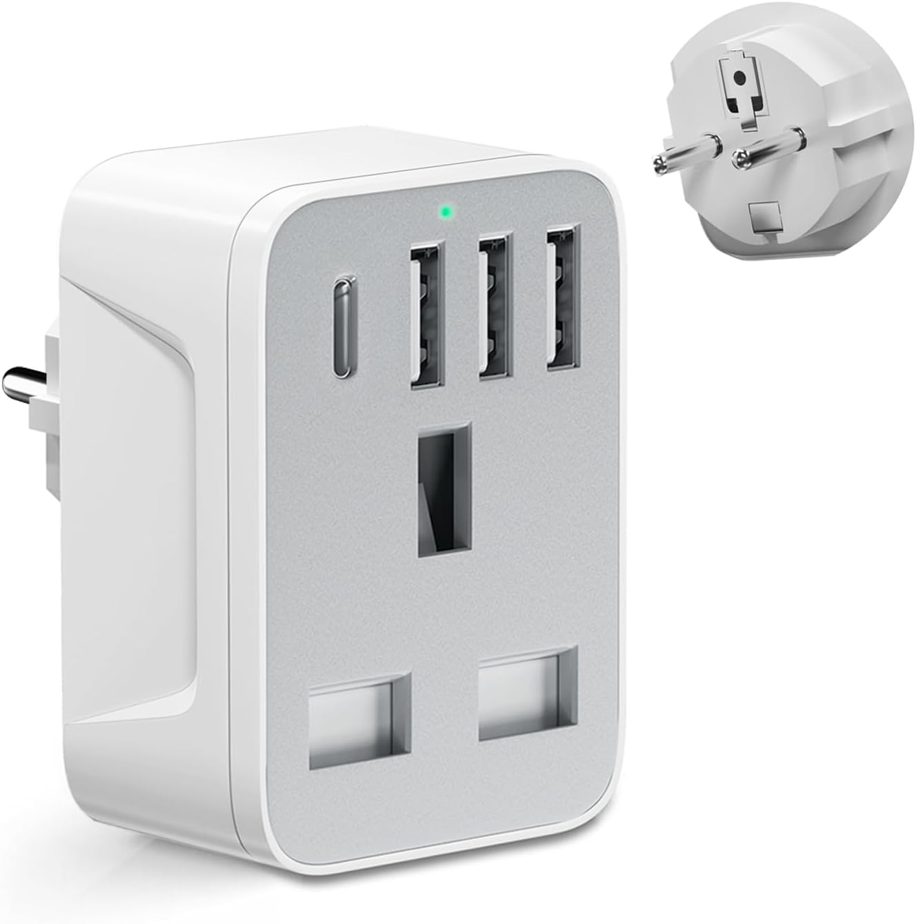European to Uk Plug Adapter,Travel Adapter UK to European Plug with 1*USB C & 3*