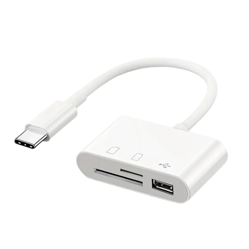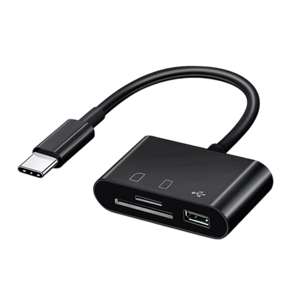 Plug and Play USB C SD Card Reader for Huawei and iPhone, Two-way transfer Memory Card Adapter with SD MicroSD USB Ports, 3-in-1 OTG Reader for Androi