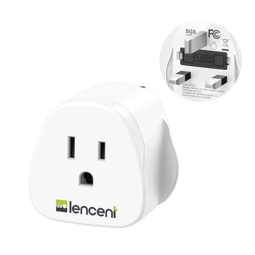LENCENT US to UK Plug Adapter, 2/3 Pin USA to 3 Pin UK Plug Adaptor, American/Me
