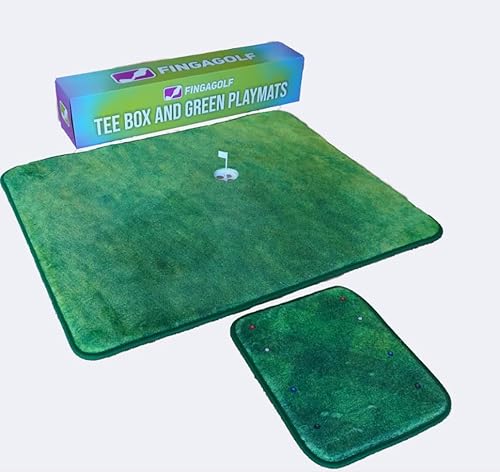Fingagolf Tee Box & Green Playmats Set – Portable Mini Golf Mats for Indoor Flick Golf Game – Realistic Turf Feel – Essential Add-On for Fingagolf Play – Great for All Ages