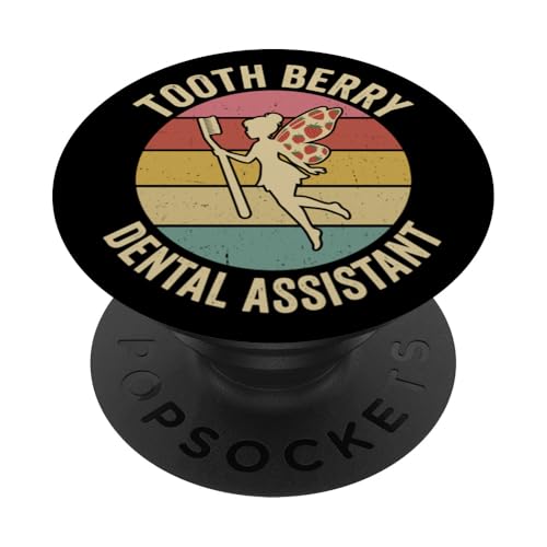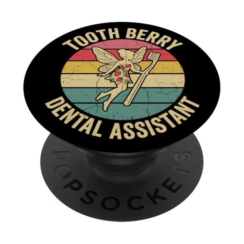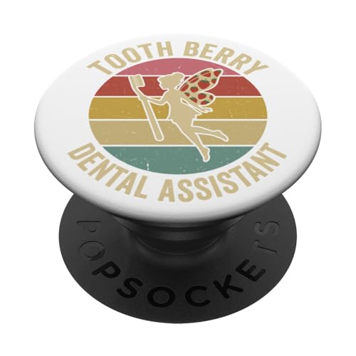 Tooth Berry Funny Dental Assistant Pun Retro Sunset Fairy PopSockets Adhesive PopGrip