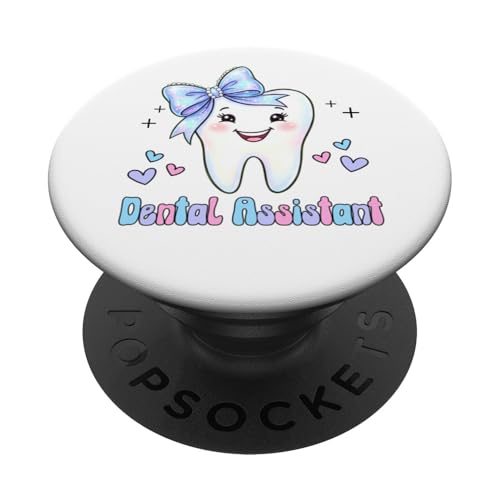 Dental Assistant Coquette Bow Cute Tooth Blue Pink PopSockets Adhesive PopGrip