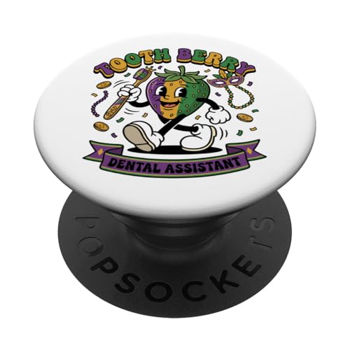 Tooth Berry Funny Mardi Gras Dental Assistant Pun Strawberry PopSockets Adhesive PopGrip