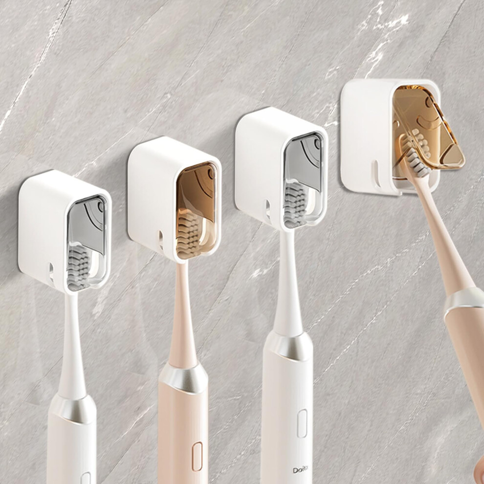2 Slots Wall Mount Toothbrush Holder with Cover Self Adhesive Tooth Brush Storage Organizer for Shower Bathrooms Toothbrush Stand with Automatic To