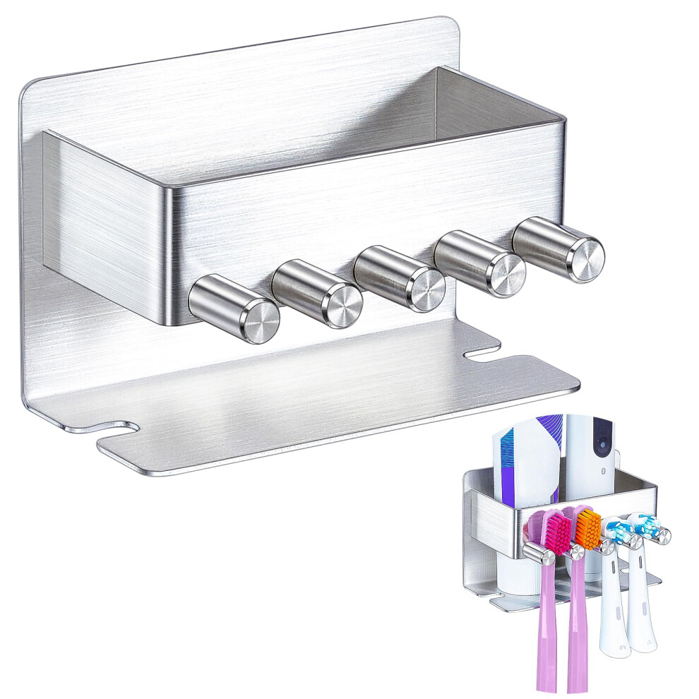Stylish Toothbrush Storage Organizer, Adhesive Tooth Brush Holder for Quick Drainage in Your Bathroom (Stainless Steel)