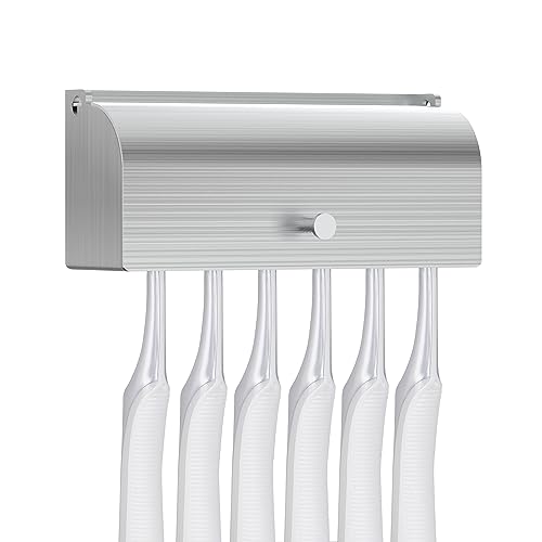 Linkidea Wall Mount Toothbrush Holder with Cover for Bathroom, Shower, Stainless Steel Self Adhesive Wallmount 6 Slots Tooth Brush Hanger
