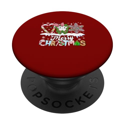 Merry Christmas Sweater Candy Floral Tooth Bow Tie Dentist PopSockets Adhesive PopGrip