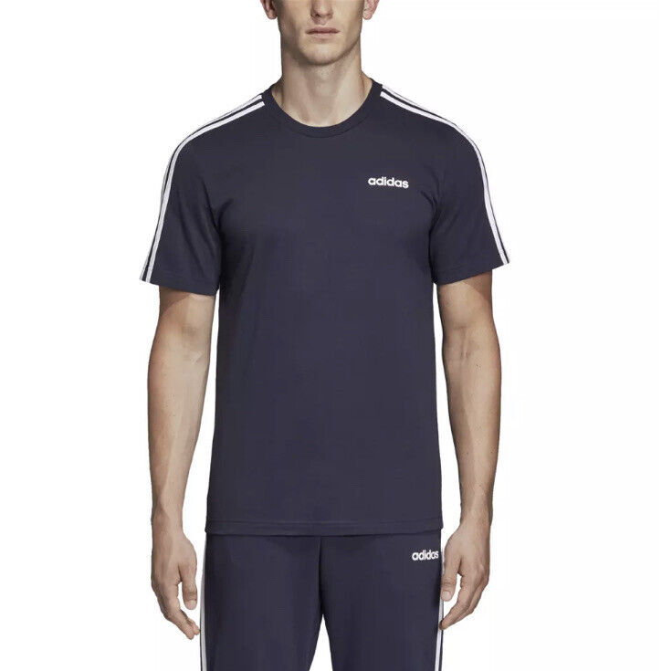 Adidas Mens Essential 3 Stripe T Shirt Top Navy Blue White UK Size Medium DU0440