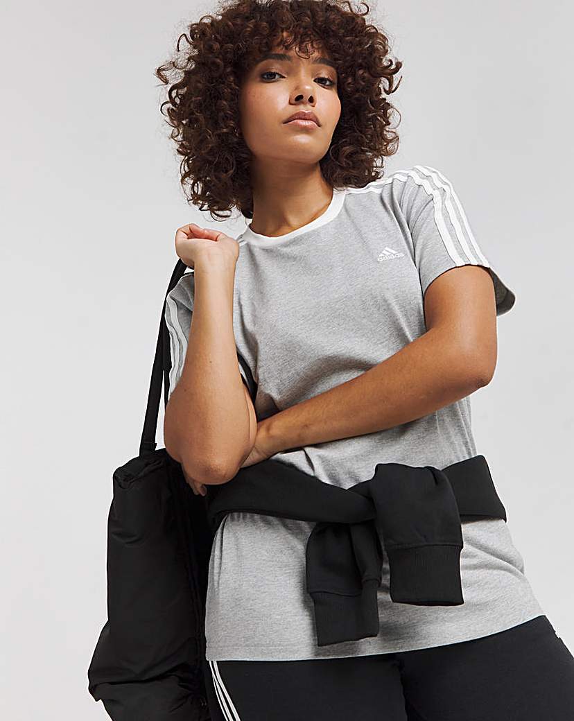 adidas 3 Stripe Boyfriend T-Shirt Grey - adidas - Size: S8/10