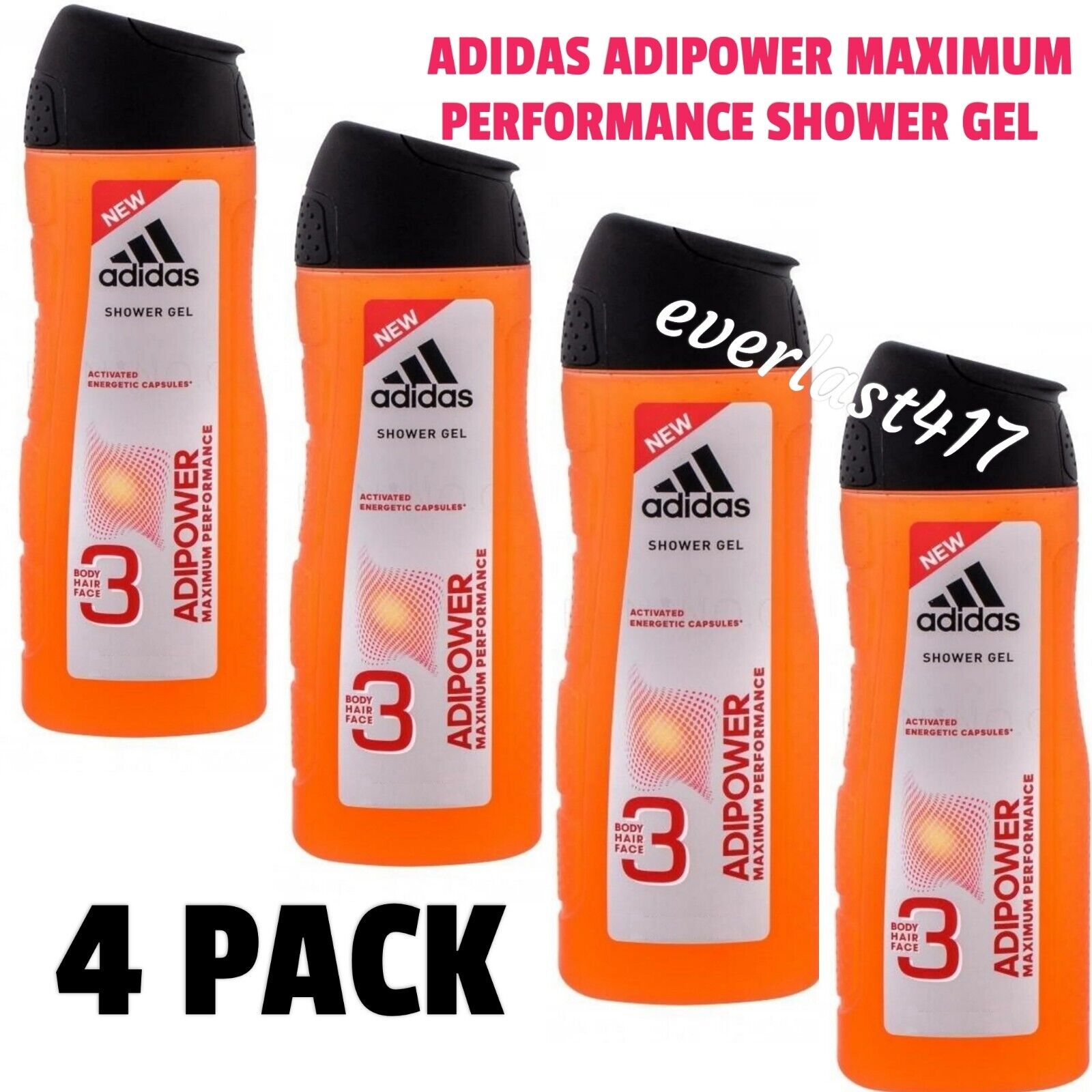 Adidas Shower Gel 3in1 ADIPOWER Body Hair Face 4 Pack 250ml Refreshing cleanse