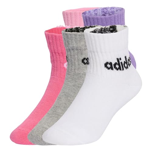 adidas Unisex Kids LINEAR KIDS ANKLE SOCKS 5pP, True Pink/Pink Fusion/Violet Fusion/Medium Grey Heather, 3-4 Years