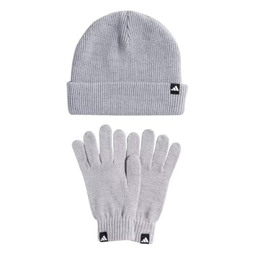 adidas Unisex GLOVE + BEANIE PACK, Light Grey Heather/White, M