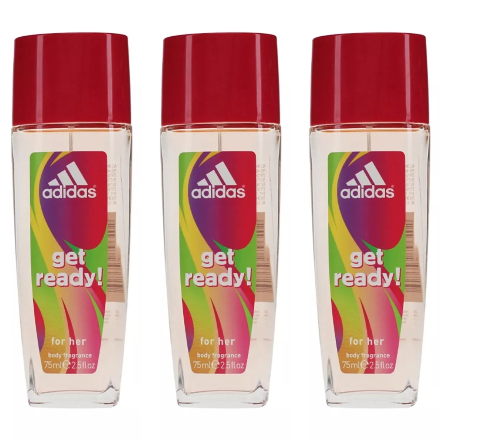 Adidas Get Ready For Women Body Fragrance Deodorant Spray 75ml - X3 Pack