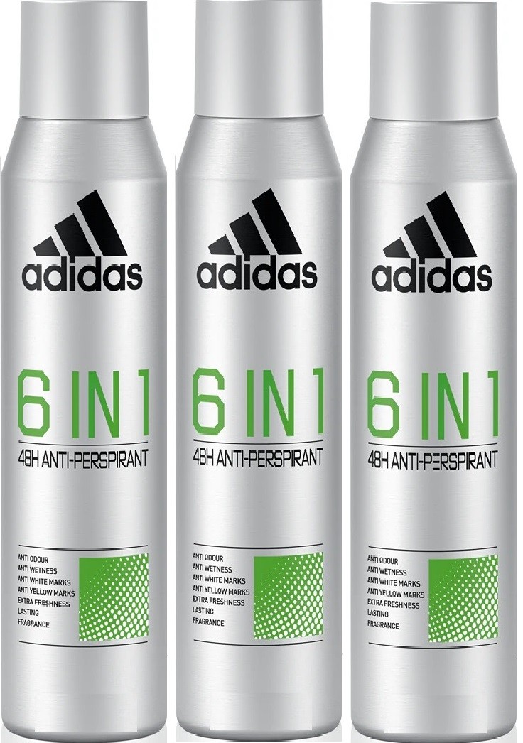 3 x 200ml Adidas 6 in 1 Cool & Dry 48H Anti Perspirant Body Spray