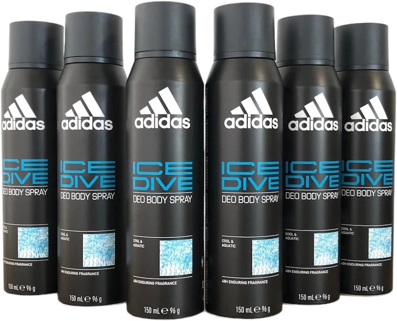 6 x 150ml ADIDAS Ice Dive Deodorant Body Spray 48H Enduring Fragrance