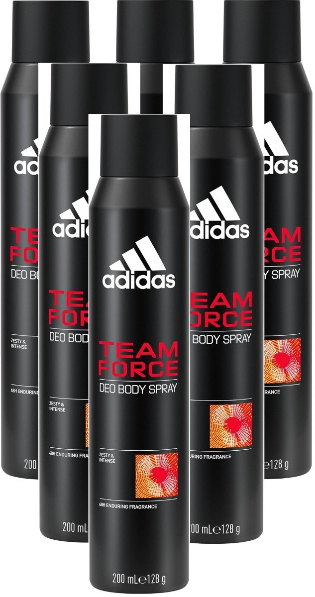 6 x 200ml Adidas Team Force 48H Deodorant Body Spray