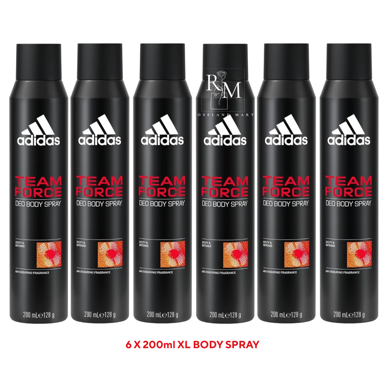 6 X 200ml XL ADIDAS TEAM FORCE ZESTY & INTENSE DEODORANT BODY SPRAY FREE POST UK