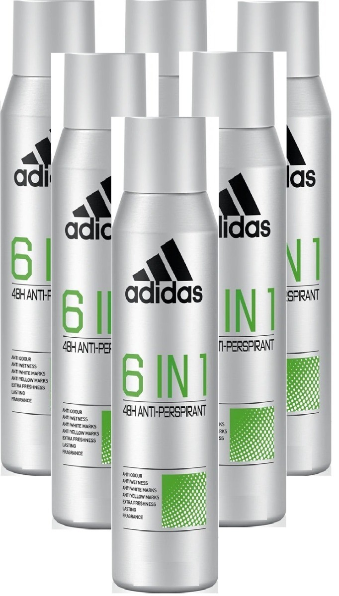 6 x 200ml Adidas 6 in 1 Cool & Dry 48H Anti Perspirant Body Spray