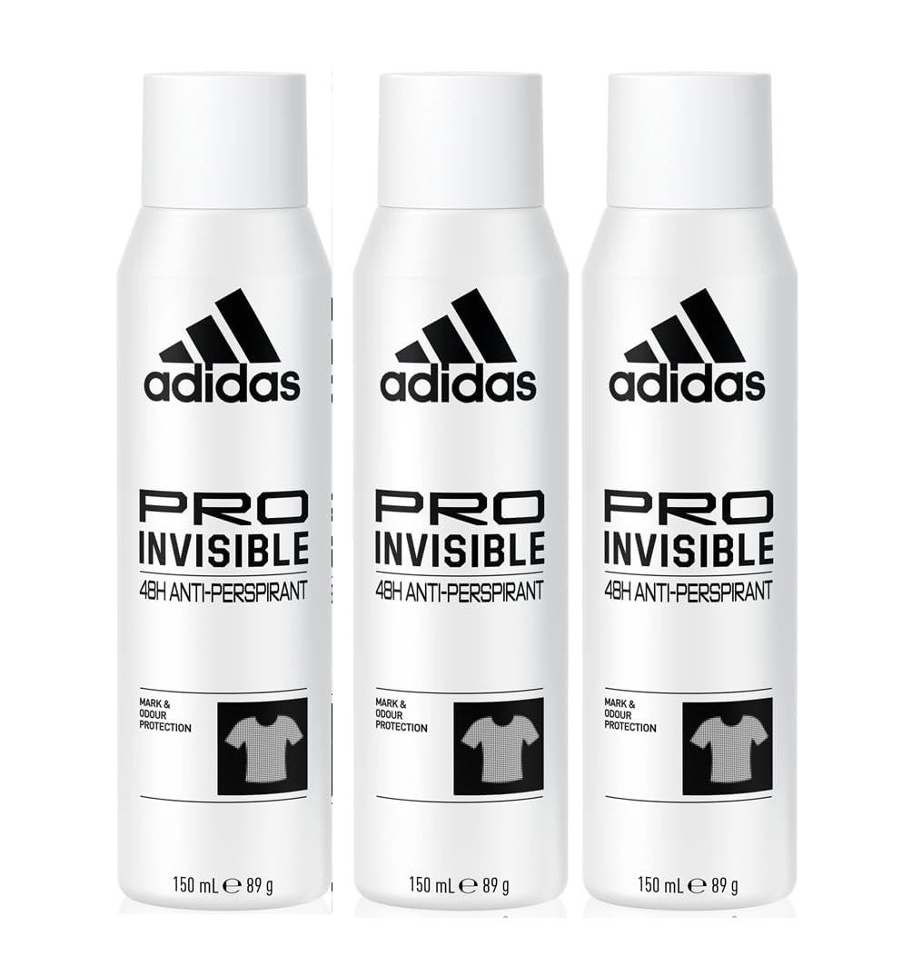 Adidas PRO Invisible Anti-Perspirant Spray 150ml 48H Men’s Deodorant x3 Pack