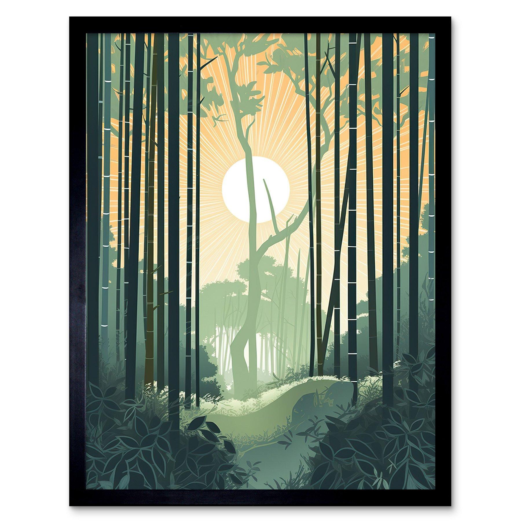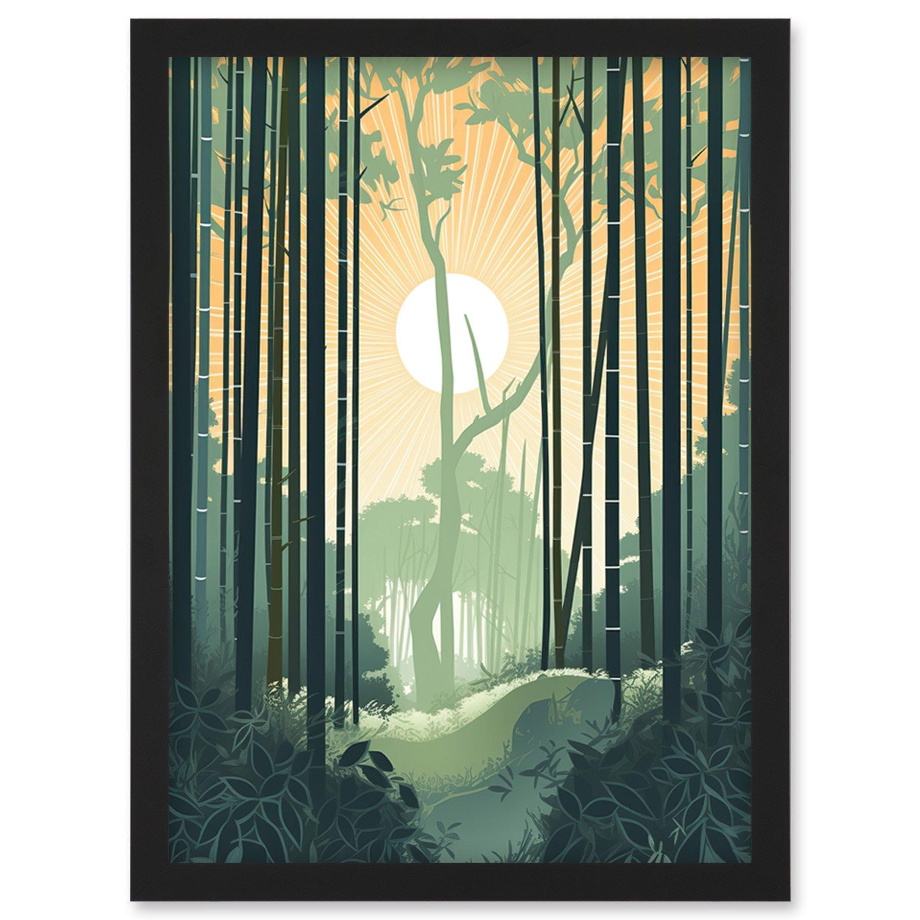 Arashiyama Bamboo Grove Serene Forest Illustration Art Print Framed Poster Wall Decor 12x16 inch