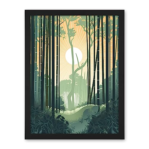 Artery8 Arashiyama Bamboo Grove Serene Forest Illustration Artwork Framed Wall Art Print 18X24 Inch