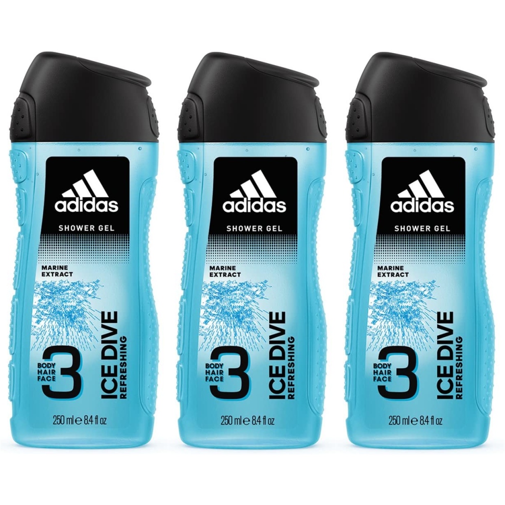 3 x Adidas Body Hair Face Shower Gel 400ml - Ice Dive (Refreshing)