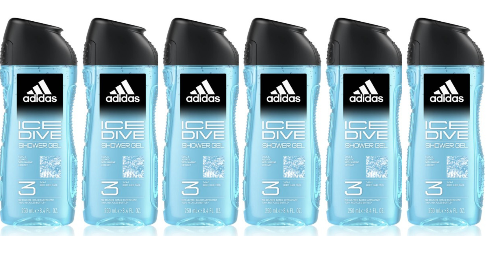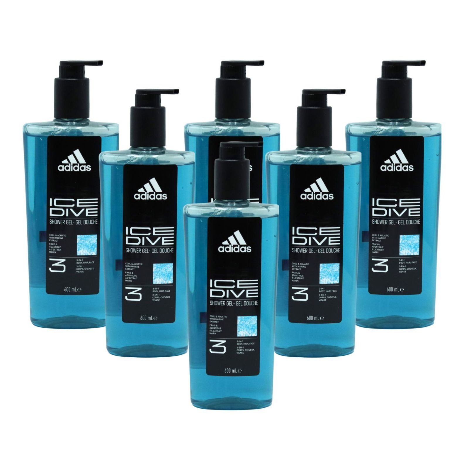 Adidas adidas Ice Dive Shower Gel with 3-in-1 Formula for Face, Body and Hair a Long-lasting Fresh Feel, Set in 6 Pack (6 x 250 ml)