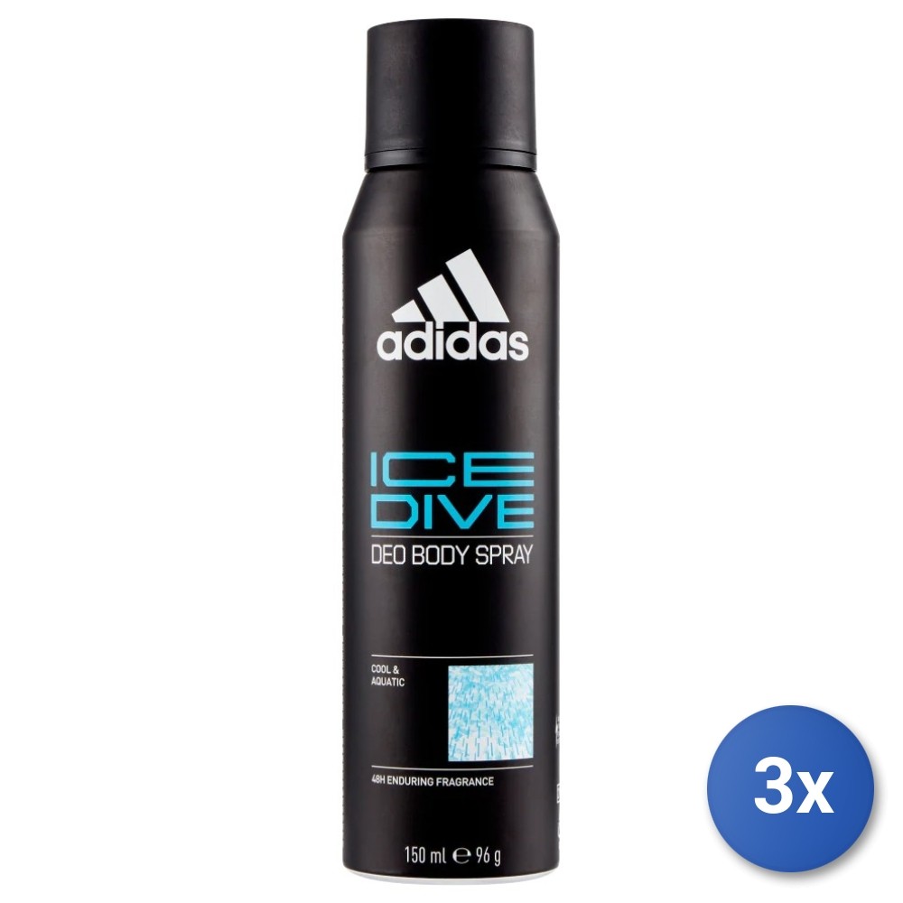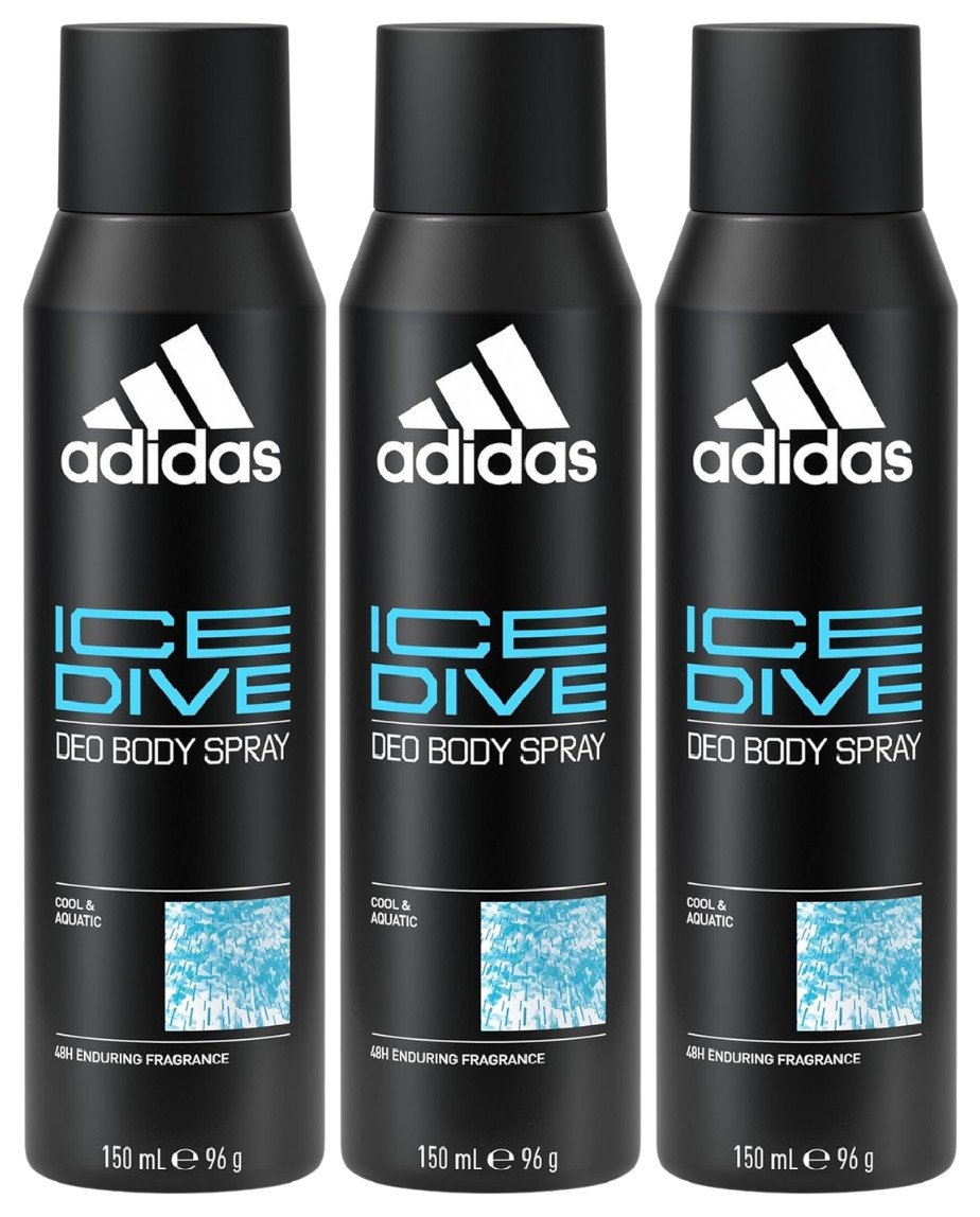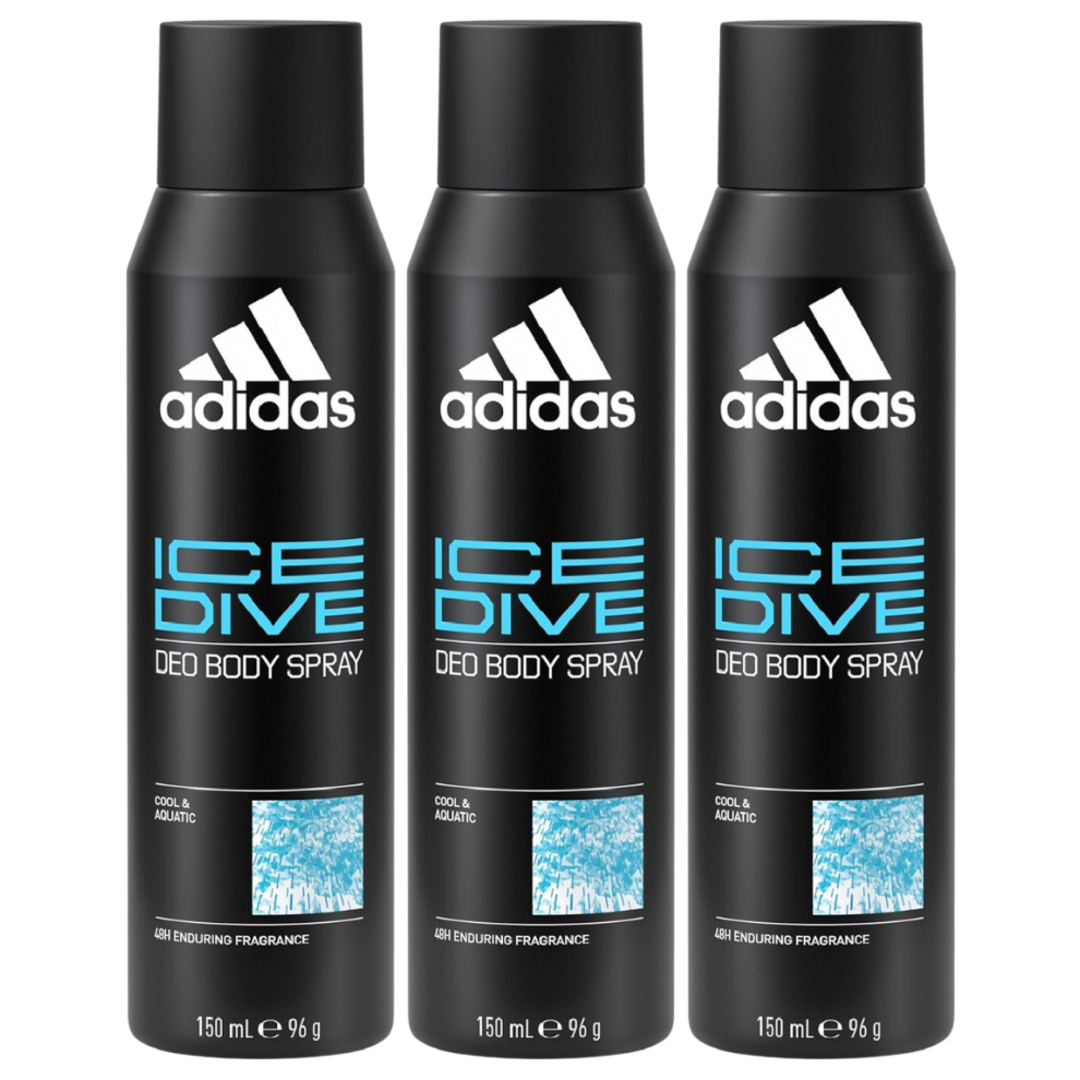 3 x Adidas Ice Dive Cool & Aquatic 48H Enduring Fragrance Deo Bodyspray 150ml