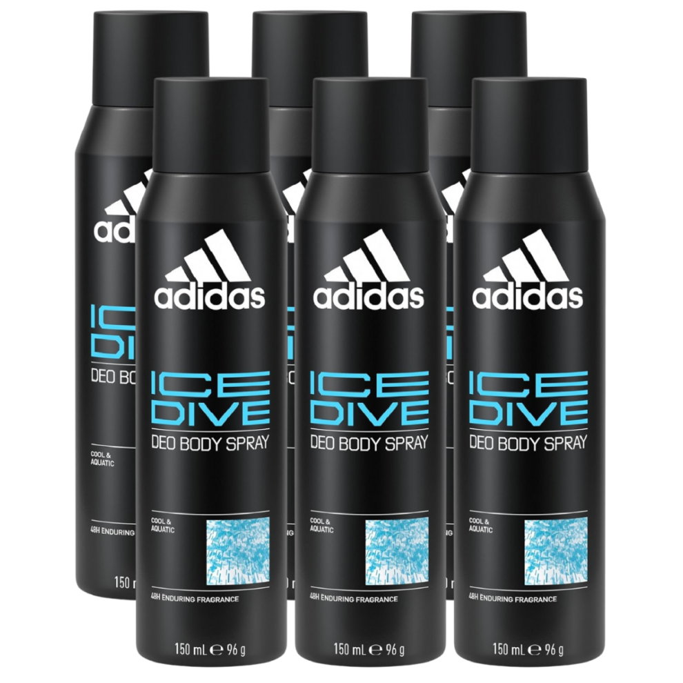 6 x 150ml ADIDAS Ice Dive Deodorant Body Spray 48H Enduring Fragrance