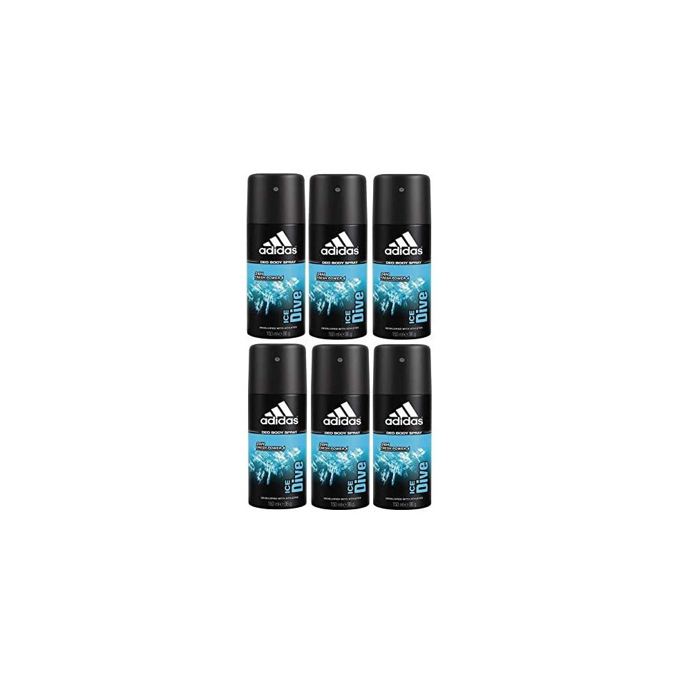 adidas Ice Dive Deodorant Body Spray for Men Long-Lasting Fresh Feeling Without Aluminium Pack of 6 x 150 ml