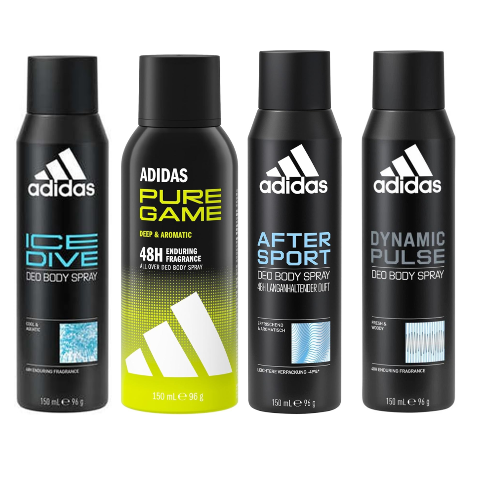 4 x 150ml Adidas MIX Deodorant Body Spray Ice Dive Victory Pure Game
