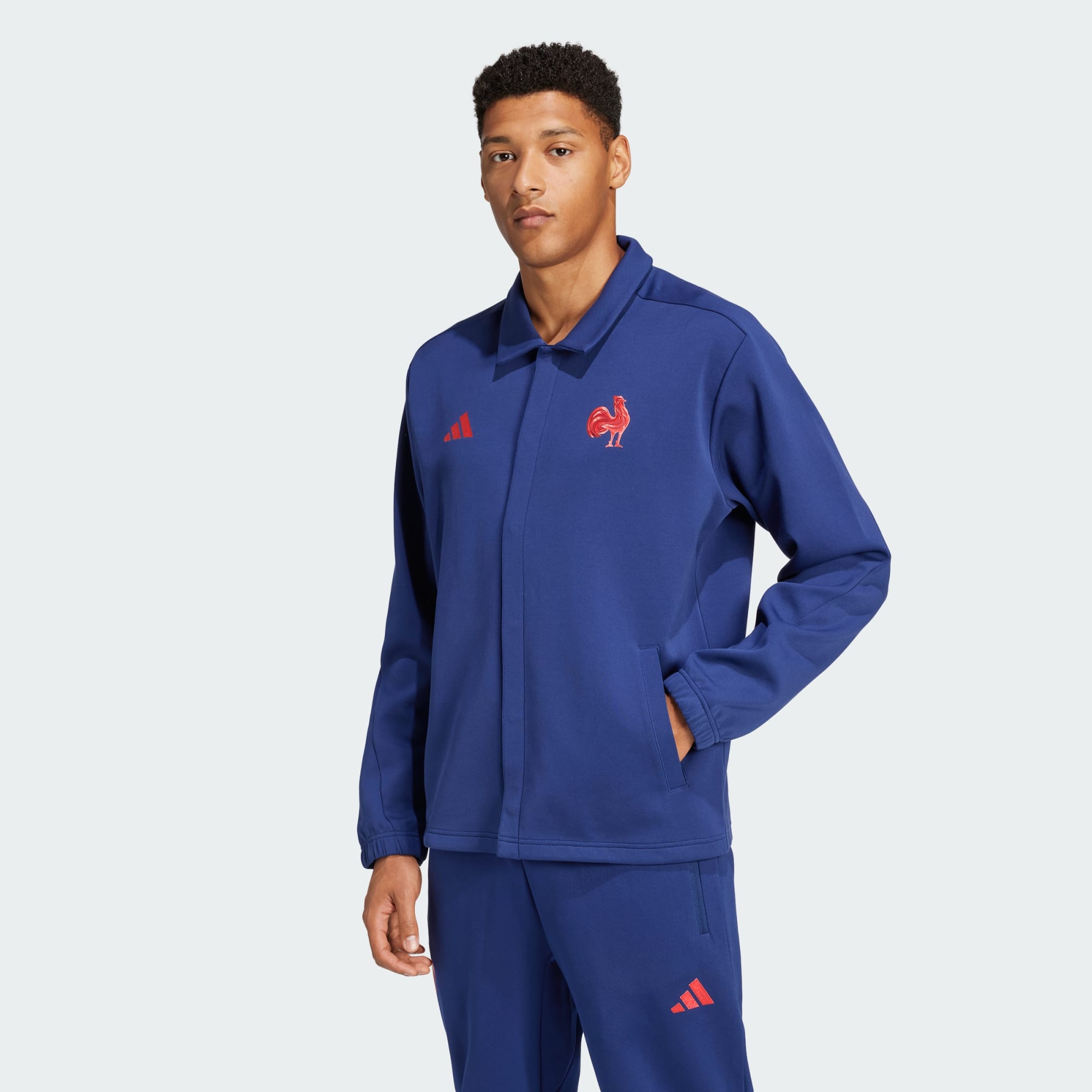 adidas Performance Mens France Travel 3-Stripes Coach's Jacket - Navy - Size 2XL (Long)