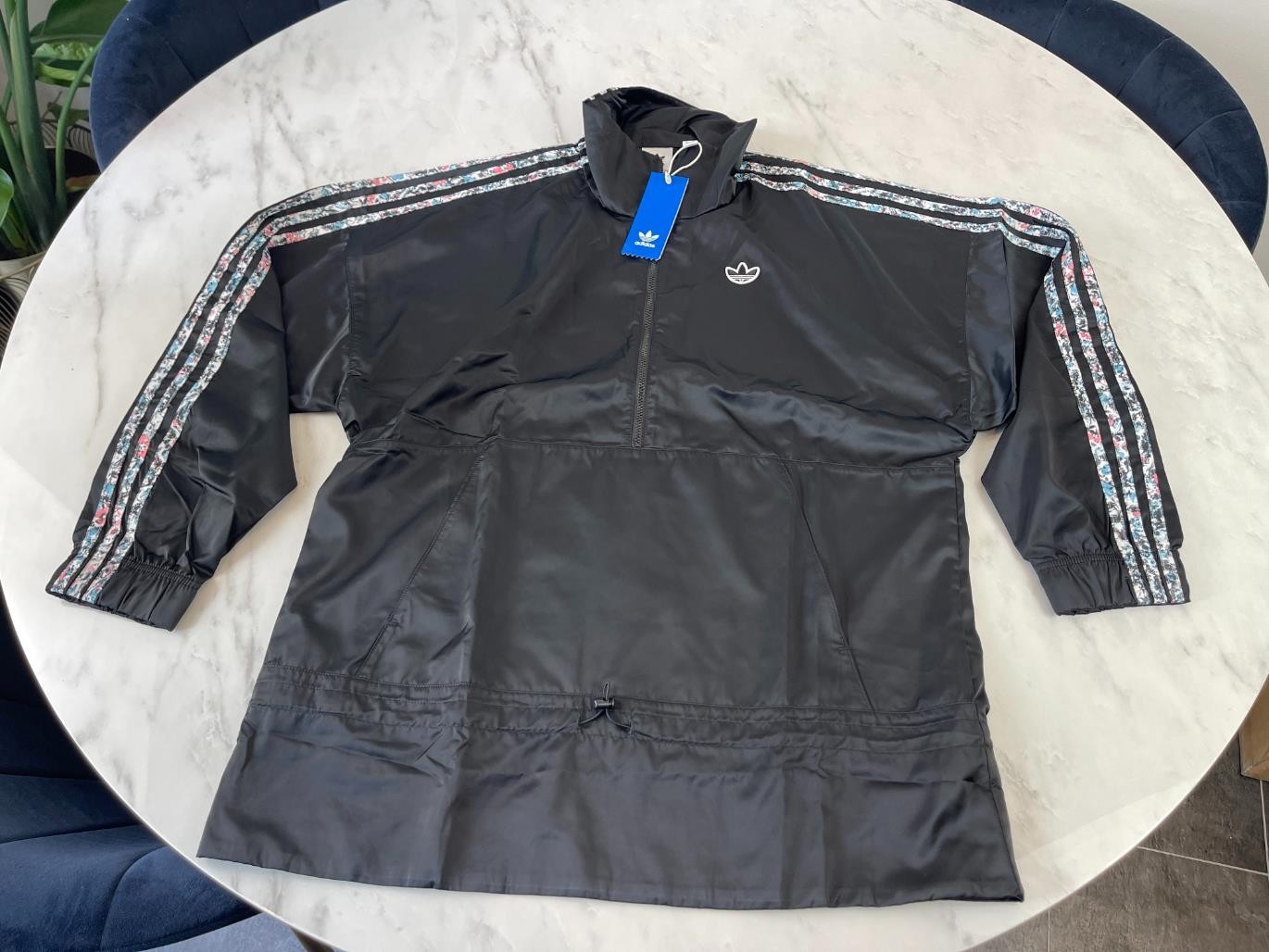 Adidas Windbreaker Jacket Womens UK10 Long Sleeve Half Zip 3-Stripes Logo Black