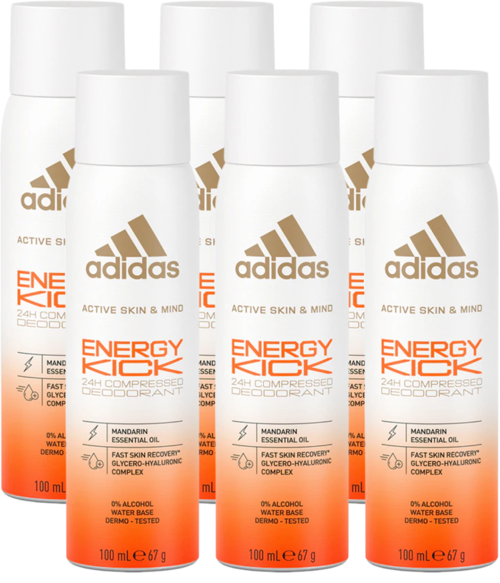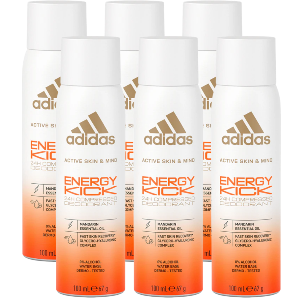 6 x Adidas 24H Compressed Deodorant 100ml - Energy Kick (Mandarin)