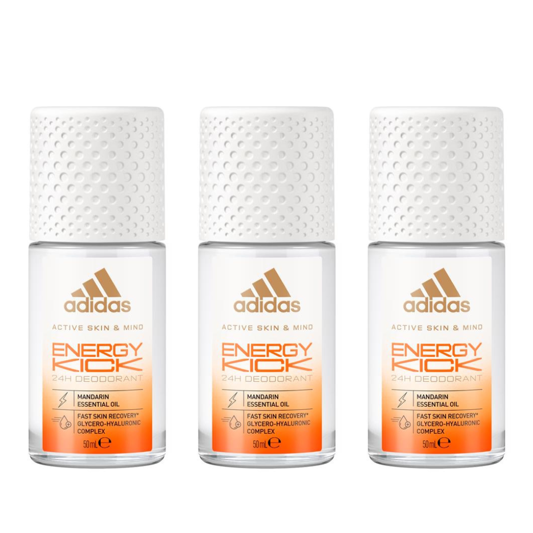 ADIDAS ENERGY KICK ROLL ON DEODORANT 50ML 3 PACK