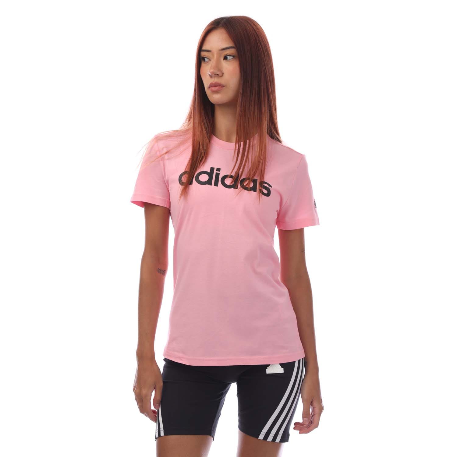 adidas Womens LOUNGEWEAR Essentials Slim Logo T-Shirt in Pink black Cotton - Size UK 16-18 (Womens)
