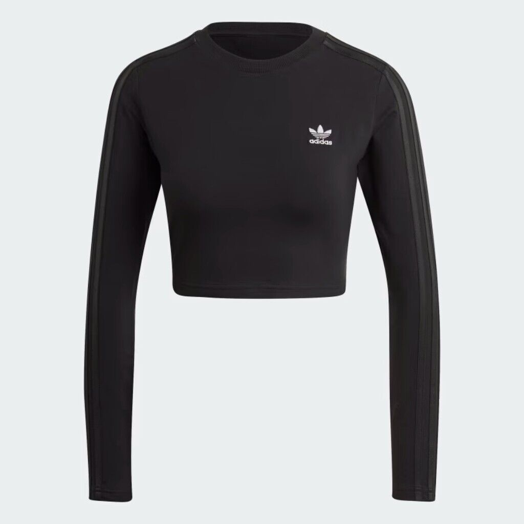 adidas Womens LOUNGEWEAR Cropped Long Sleeve T-Shirt - Black / 12