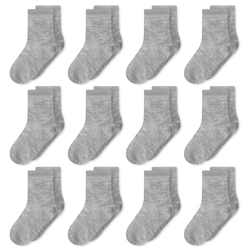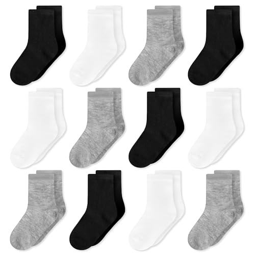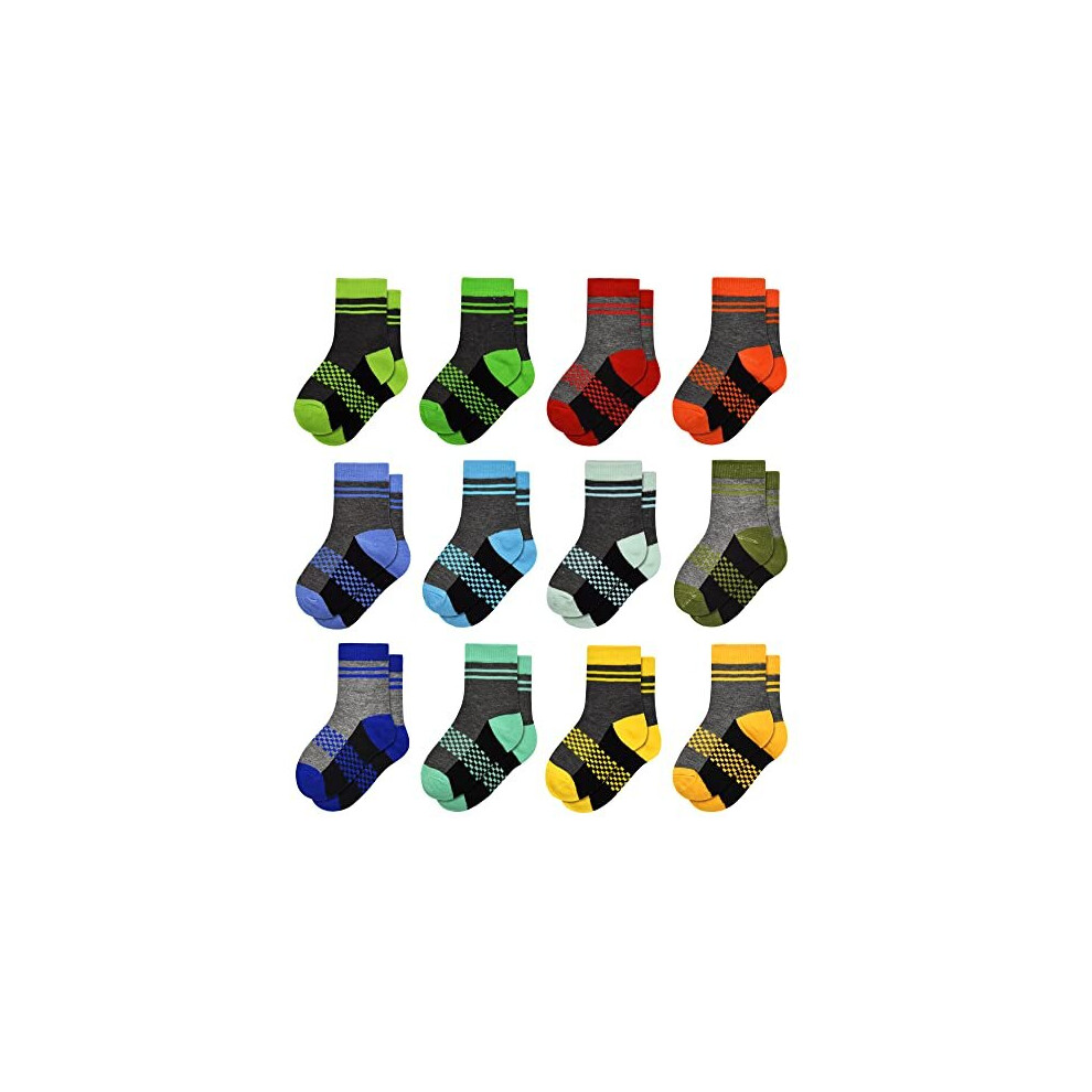 Kids Socks Boys Sports Socks Crew Mid Cut Breathable 12 Pairs for Toddler Child