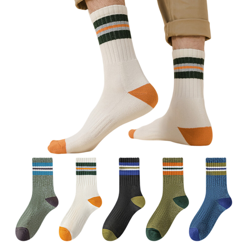 Mid-calf Long Socks for Men, Thickened Warm Socks with Striped Sports Socks Design, Fashionable Crew Cut Comfortable Fit with Professional