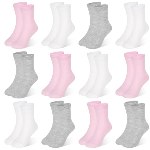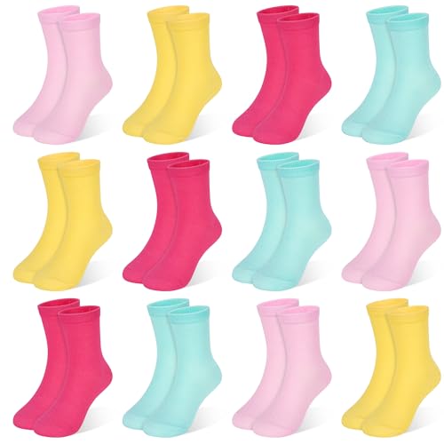 TRAMLE Girls Socks Mid Cut Half Breathable Crew Soft Kids Socks 12 Pairs for Toddler Baby Girls 7-10 Years