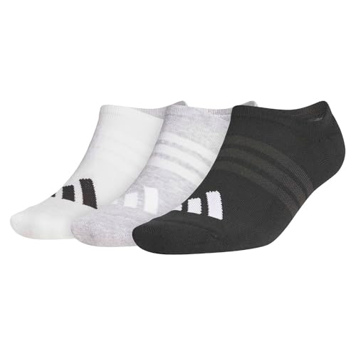 adidas Unisex THIN&LIGHT SPORTSWEAR NO SHOW SOCKS 3 PAIR PACK, medium grey heather/white/black, 8.5-10