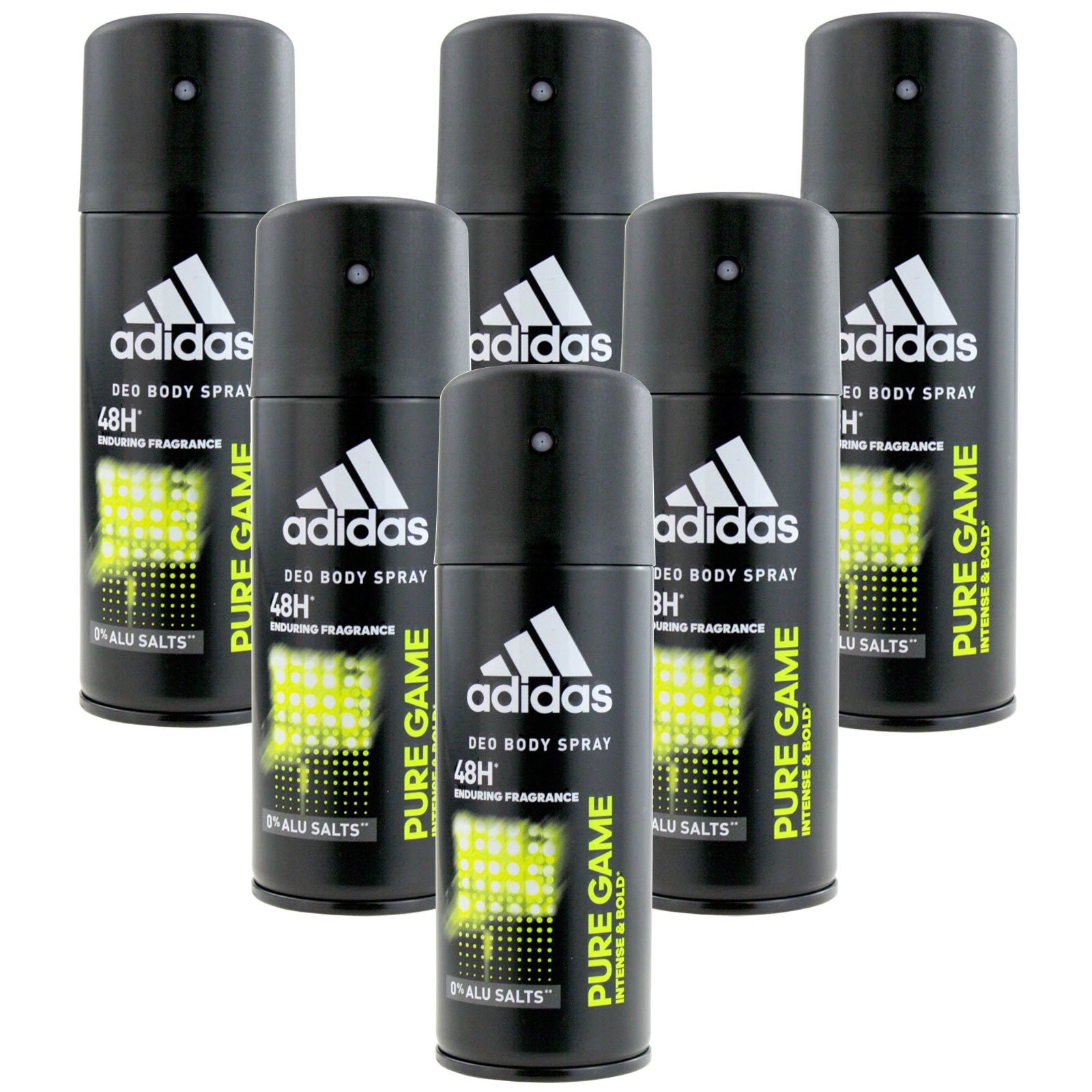 6 x Adidas Pure Game Deep and Aromatic Deodorant Bodyspray For Men 150ml