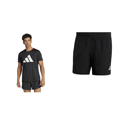 adidas Men's Run It Tee T-Shirt and Essentials 3-Stripes Woven Shorts Casual Shorts, Black