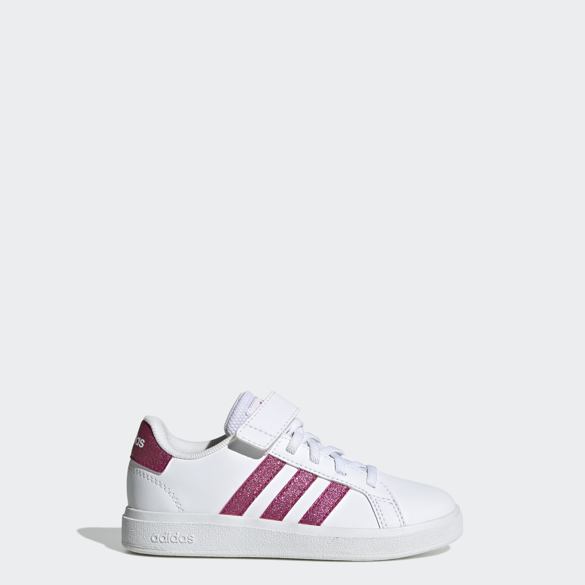 adidas Grand Court Court Elastic Lace and Top Strap Shoes Tennis Shoes Unisex – Children and Boys, Cloud White Pulse Mint Beam Pink, 11.5 UK