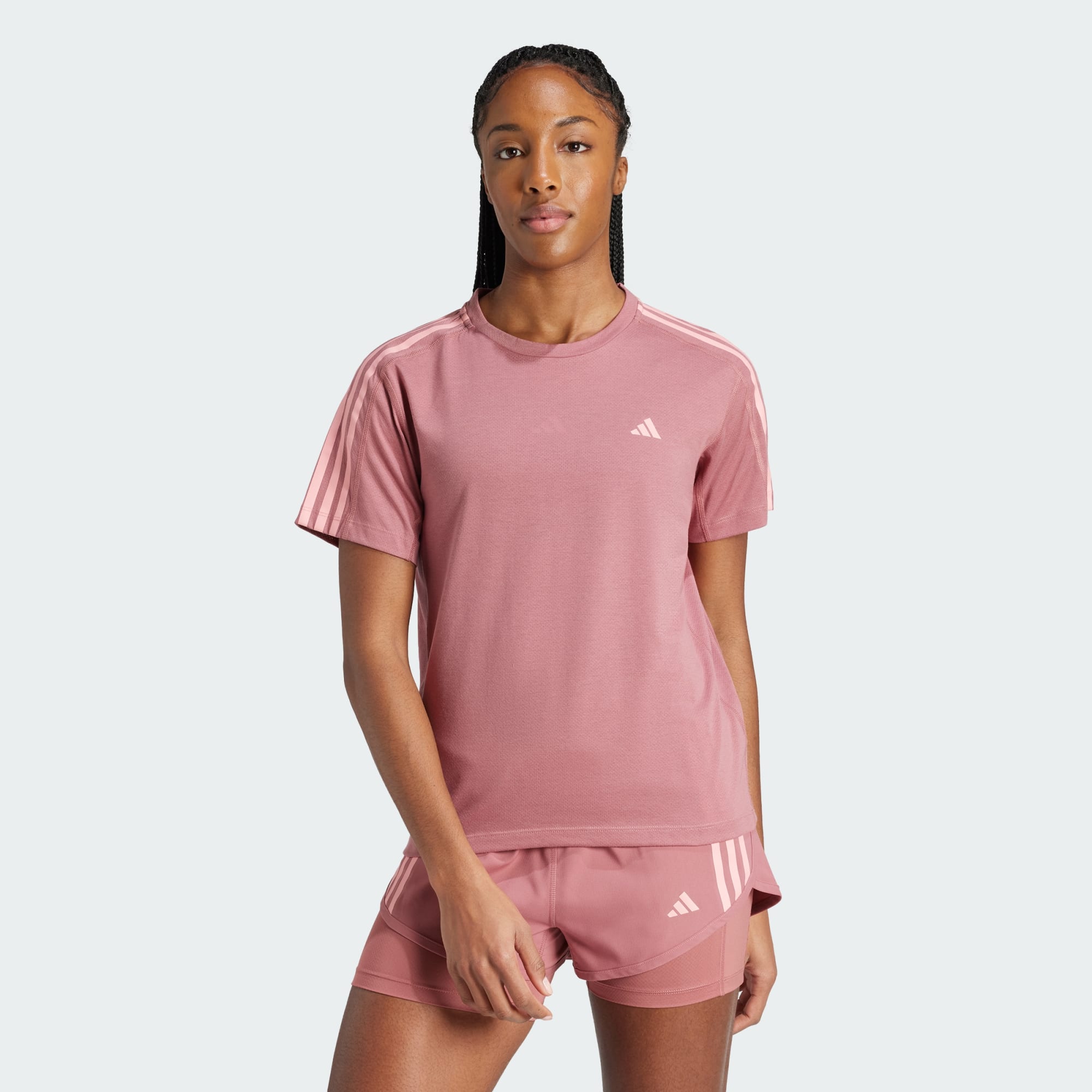 adidas Performance Womens Own the Run 3-Stripes Tee - Pink Recycled Material - Size Large