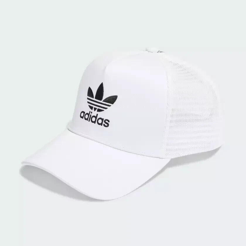 NEW Mens Adidas White Black, LOGO Original Trefoil Mesh Hat Trucker Cap UNISEX