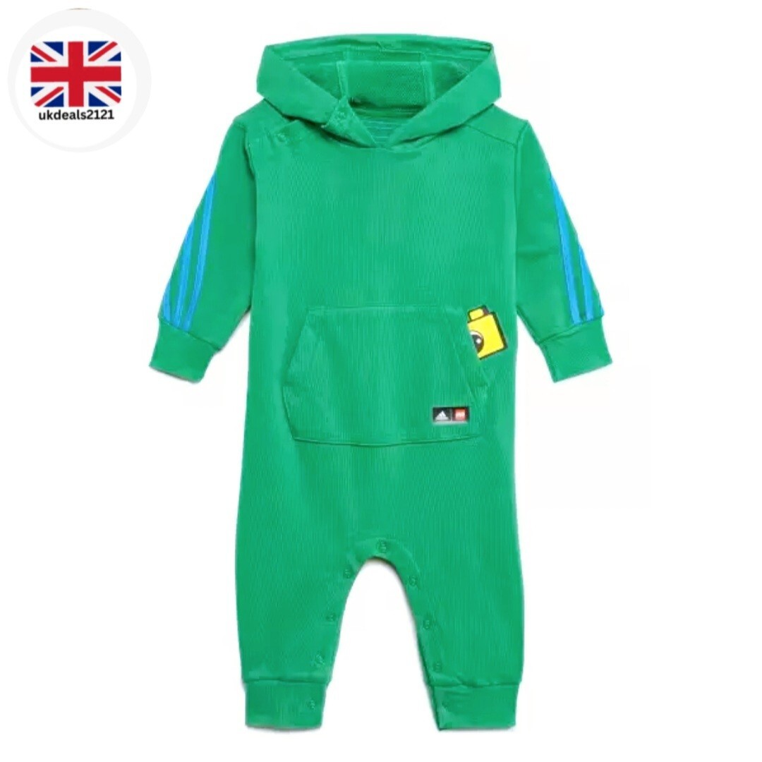 LEGO x Adidas Kids Bodysuit Romper 3-4Y Unisex Green Long Sleeve Cotton NEW