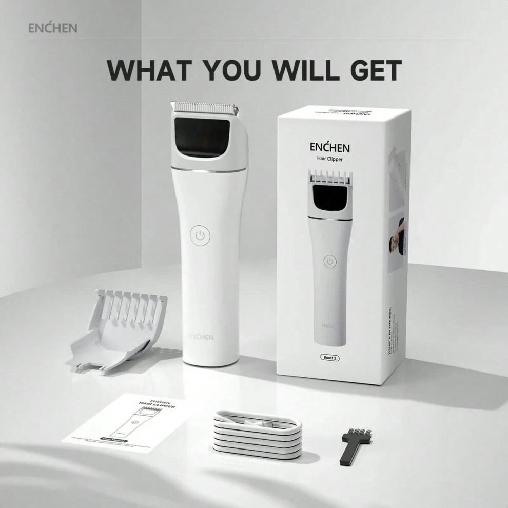 (Boost 2 White) ENCHEN Hair Clipper Hair Trimmer Hair Cutting Machine Beard Shaver Cordless Adjustable Body Trimmer for Men Travel Lock Boost 2