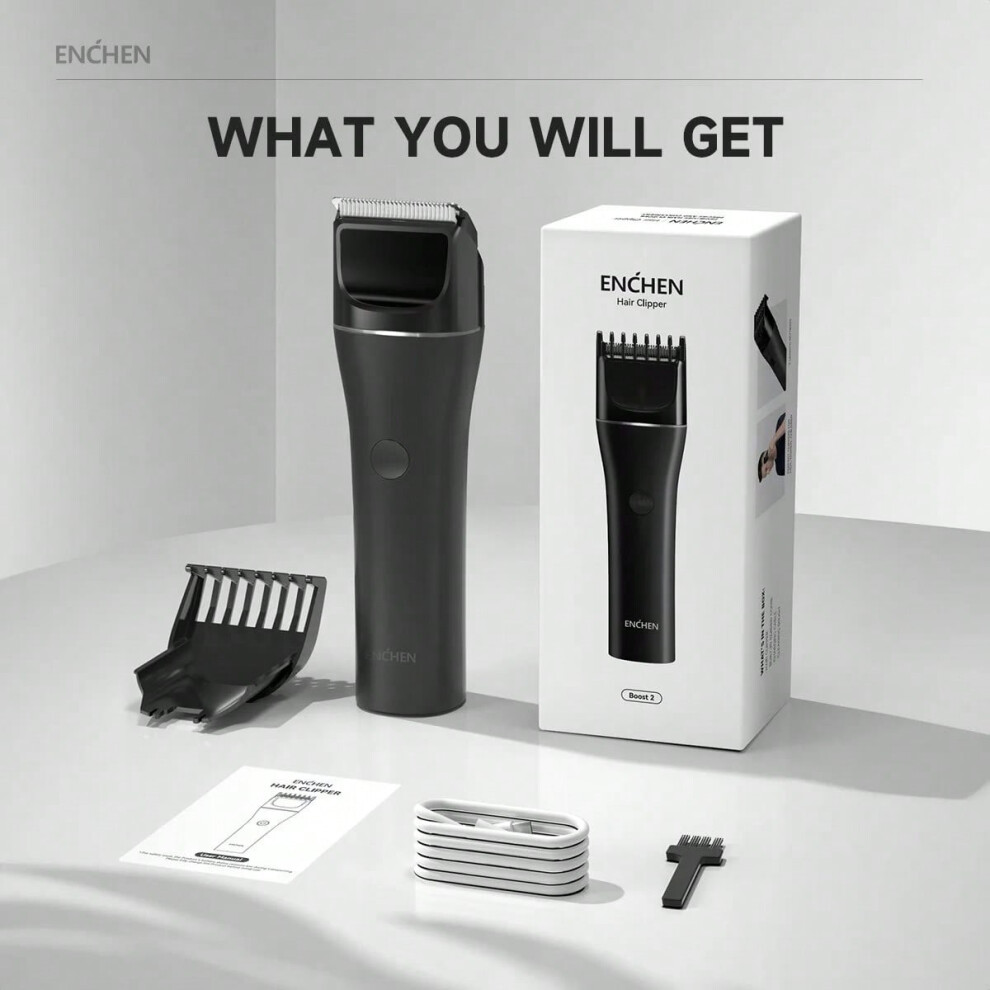(Boost 2 Black) ENCHEN Hair Clipper Hair Trimmer Hair Cutting Machine Beard Shaver Cordless Adjustable Body Trimmer for Men Travel Lock Boost 2